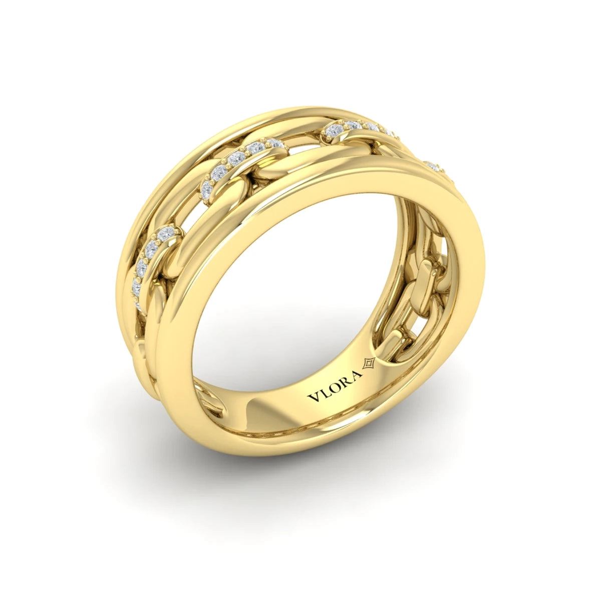 You're reviewing: Channel Set Link with Diamonds Ring Yellow Gold