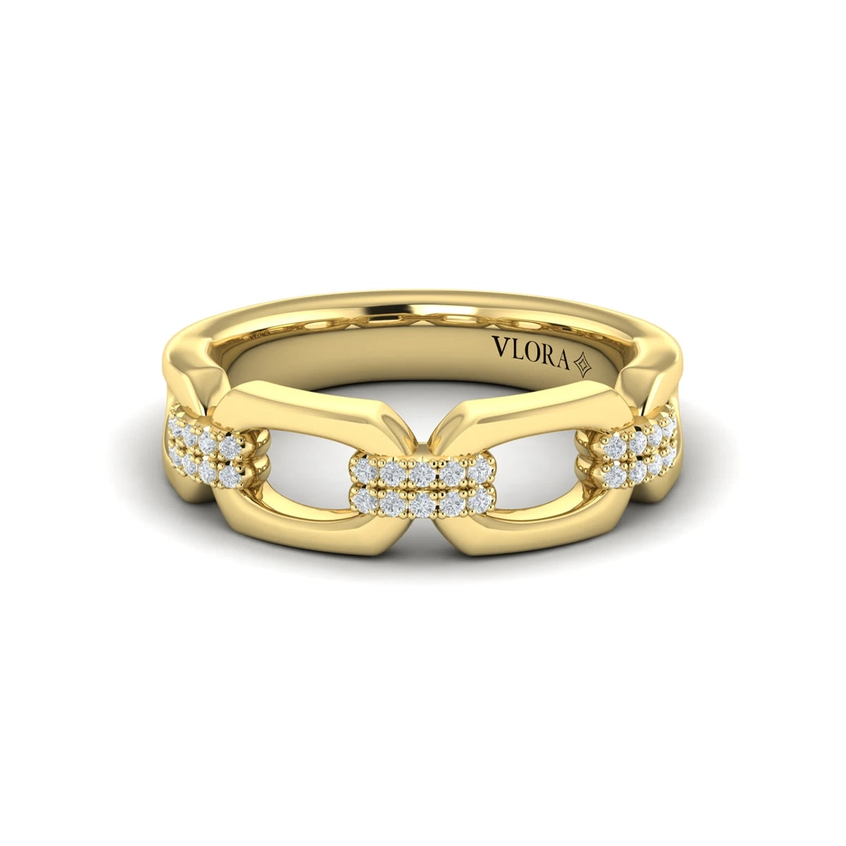 Diamond Accent East West Open Oval Link Ring Yellow Gold
