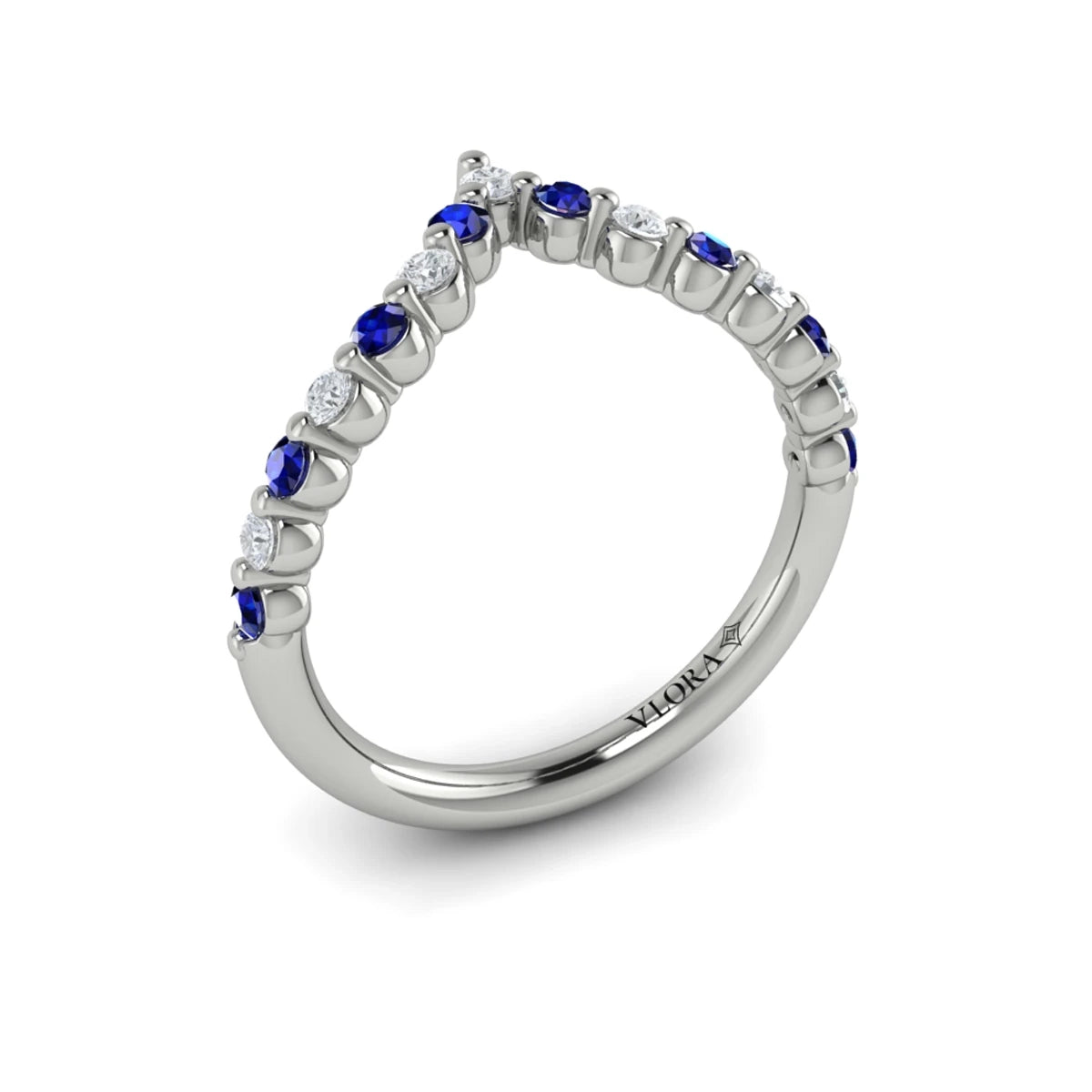 You're reviewing: Diamond and Blue Sapphire Chevron Ring White Gold