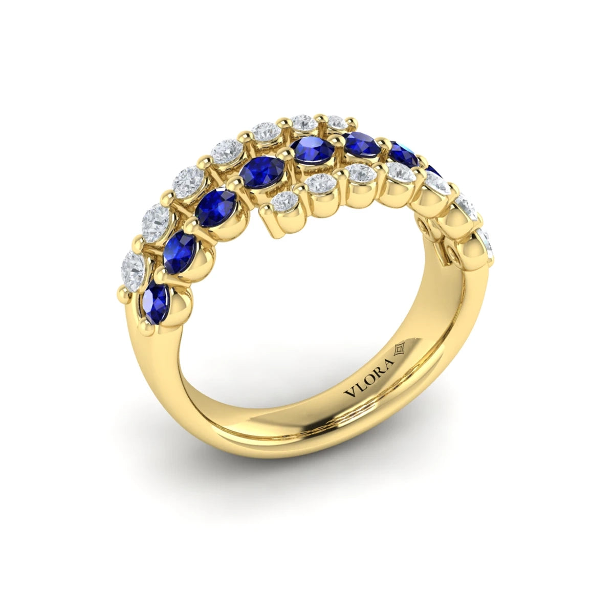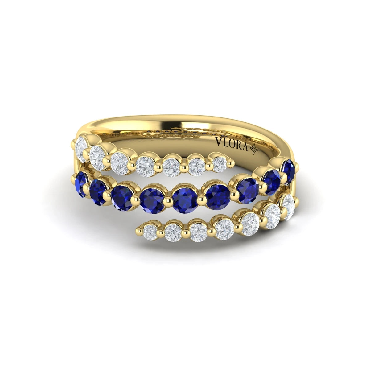 You're reviewing: Diamond and Blue Sapphire Three Row Wrap Ring Yellow Gold