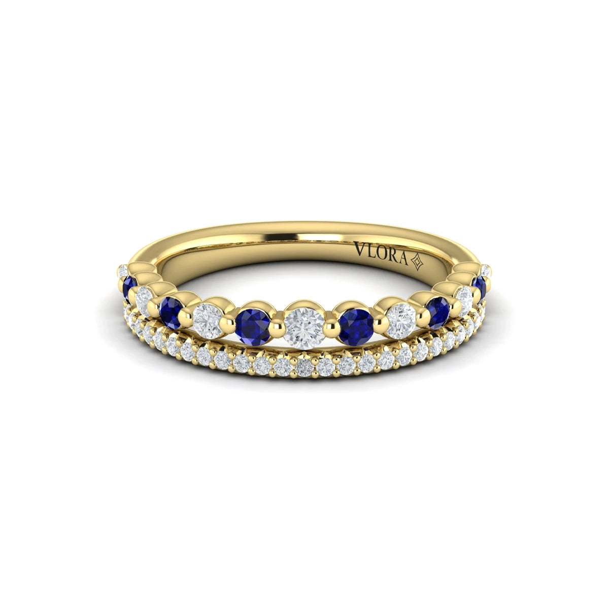 You're reviewing: Diamond and Blue Sapphire Two Row Ring Yellow Gold