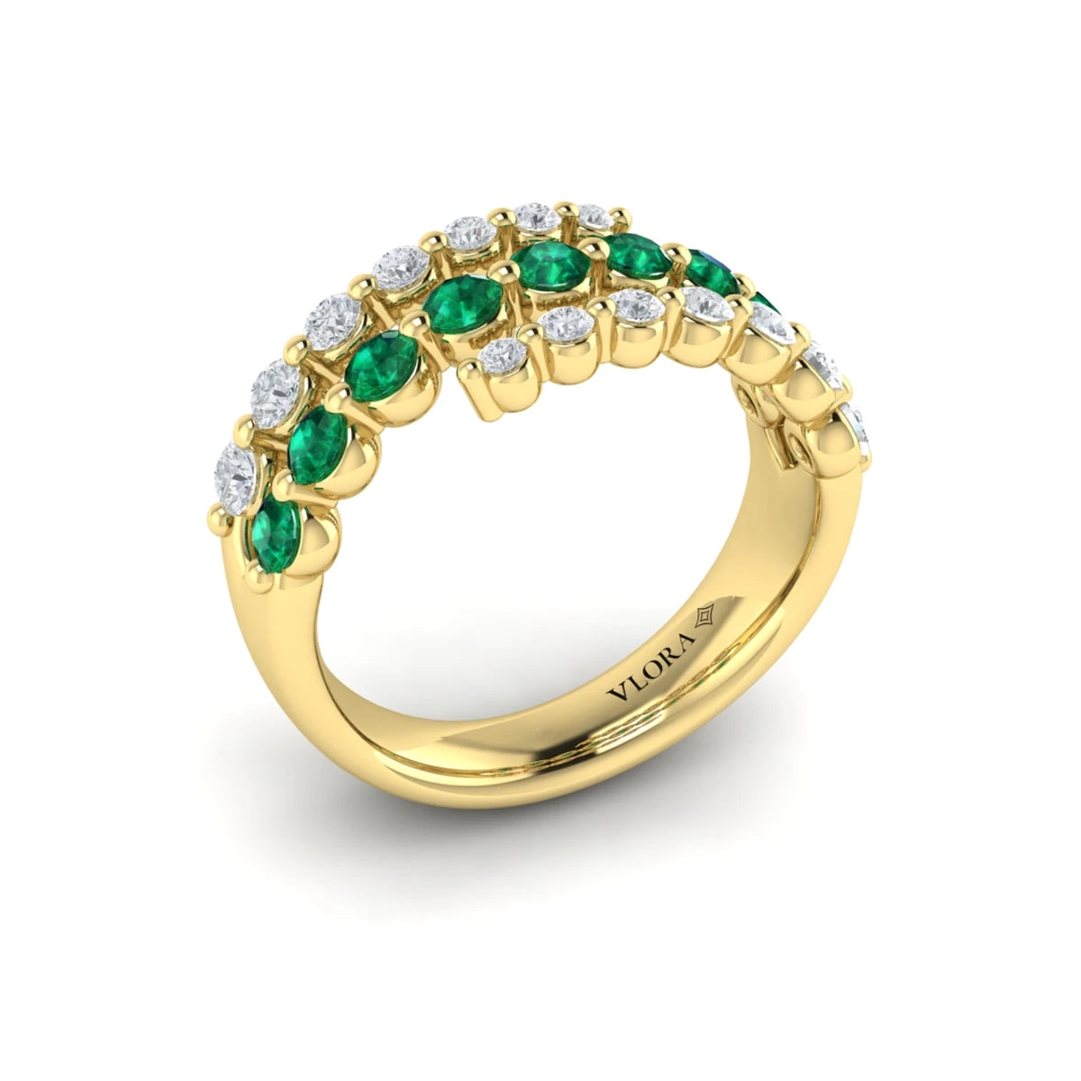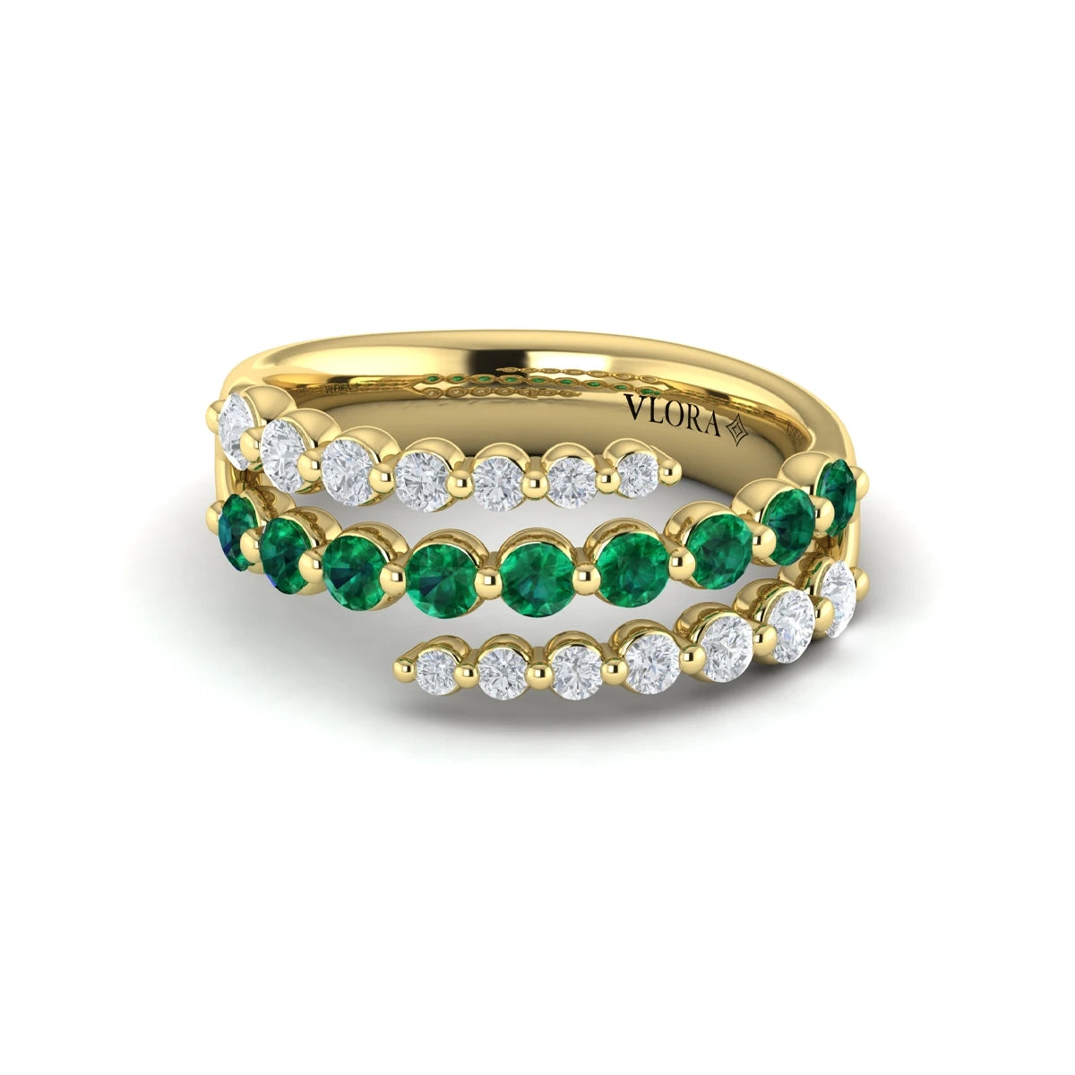 You're reviewing: Diamond and Emerald Three Row Wrap Ring Yellow Gold