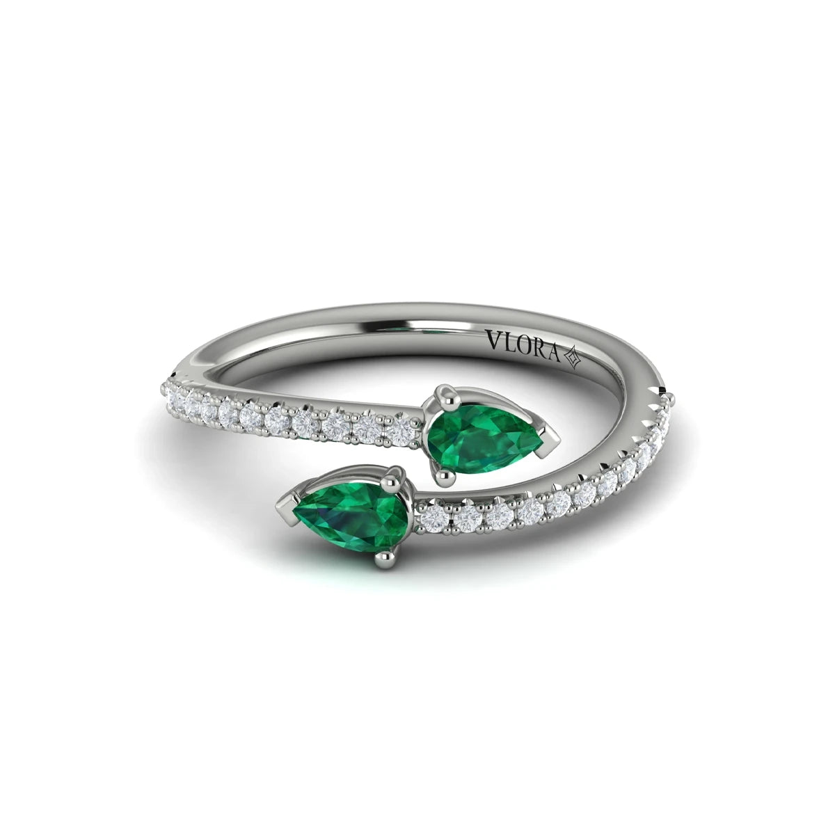 You're reviewing: Diamond and Pear Emerald Wrap Ring White Gold