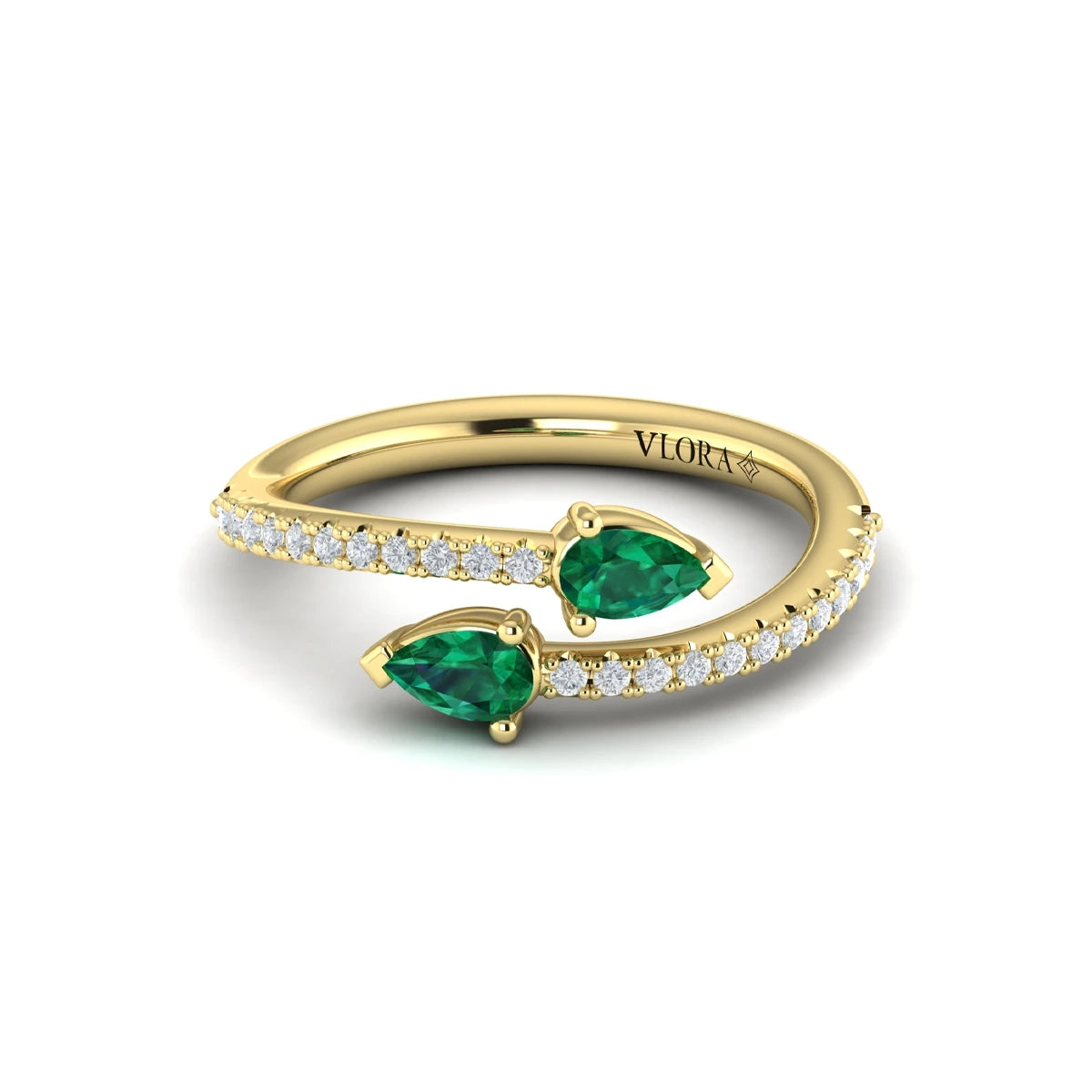 You're reviewing: Diamond and Pear Emerald Wrap Ring Yellow Gold