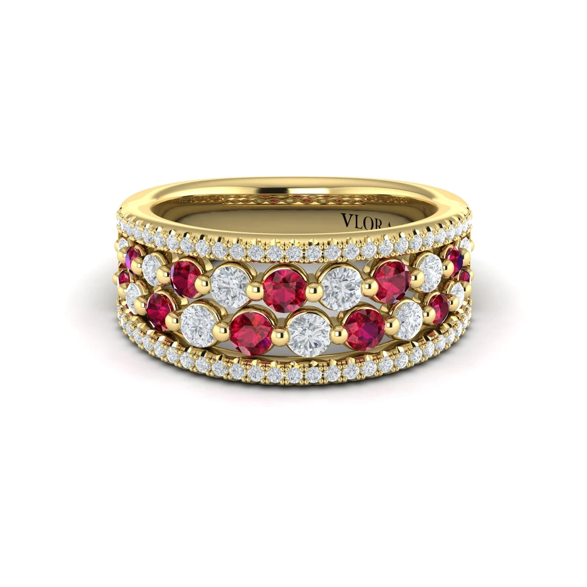 Diamond and Ruby Cluster Statement Ring Yellow Gold