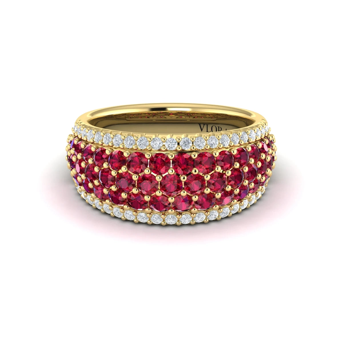 Diamond and Ruby Multi-Row Statement Ring Yellow Gold