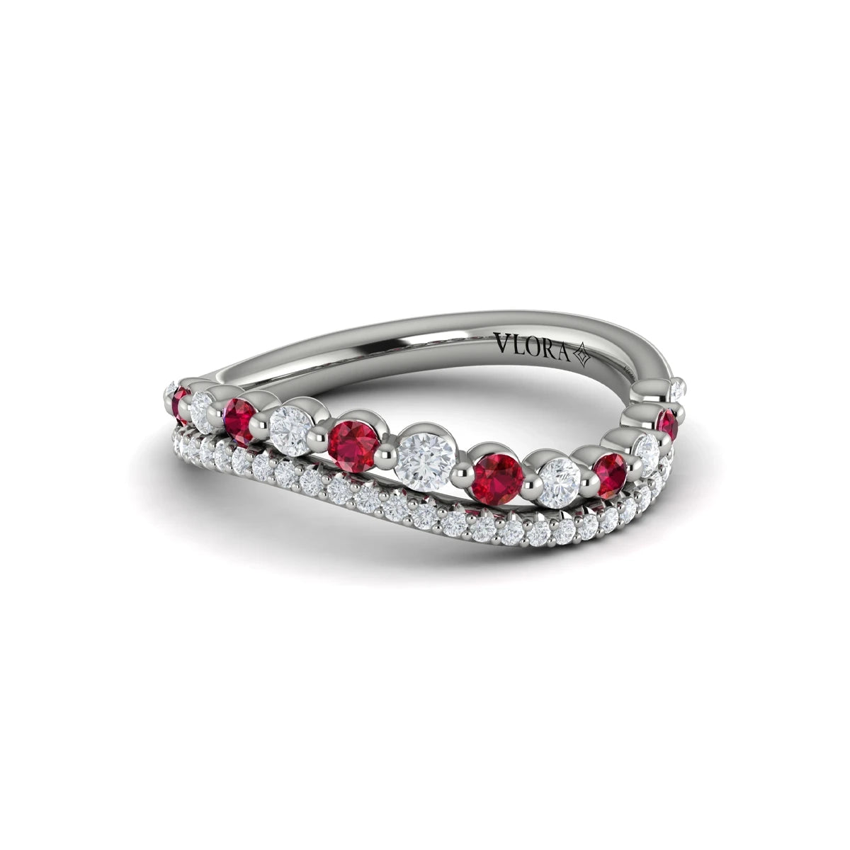 Diamond and Ruby Two Row Curved Ring Platinum