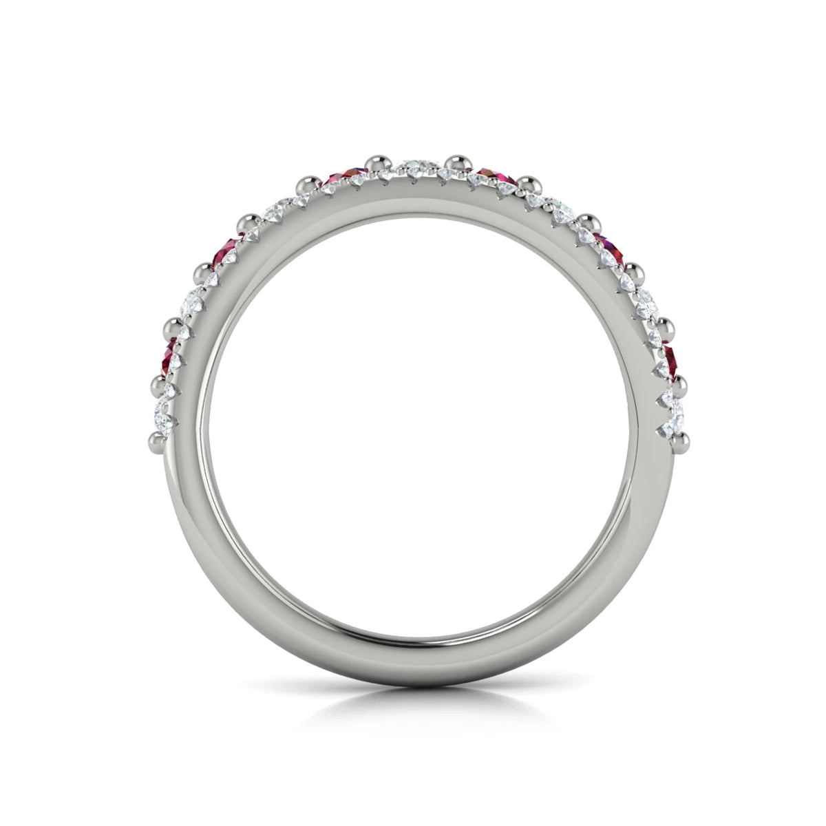 You're reviewing: Diamond and Ruby Two Row Curved Ring White Gold