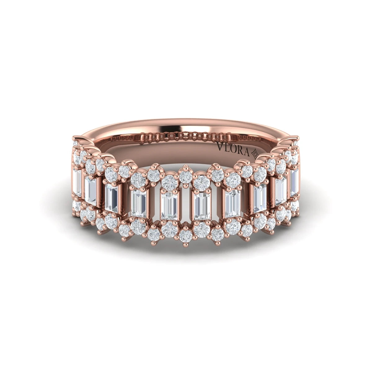 Diamond Baguette and Round Diamond Regal Ring Rose Gold
