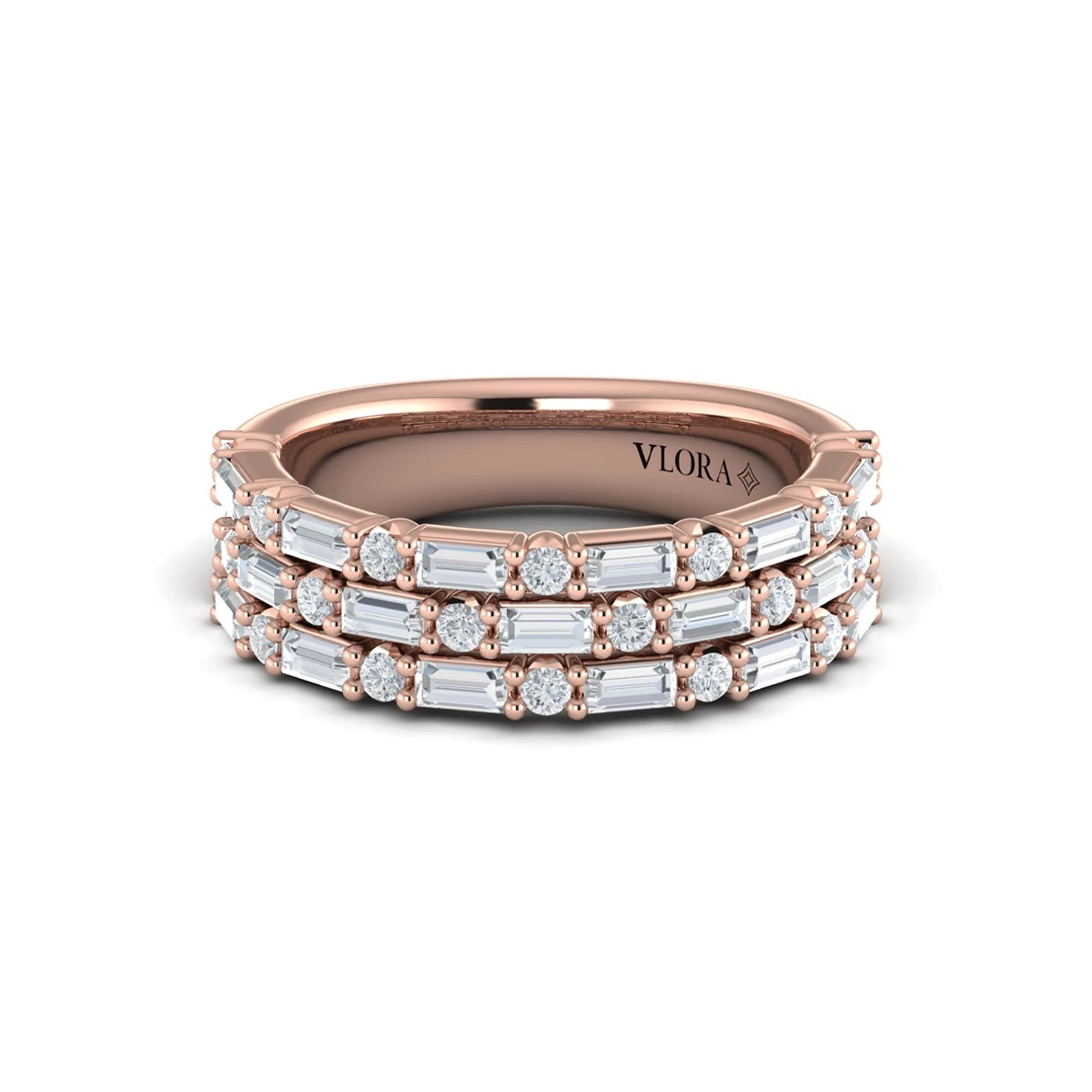 You're reviewing: Diamond Baguette Three Row Ring Rose Gold