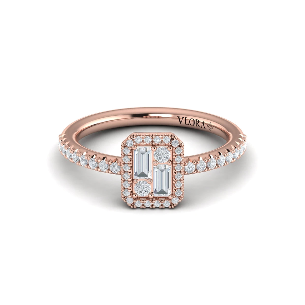 Diamond Halo with Diamond Baguettes Ring Rose Gold