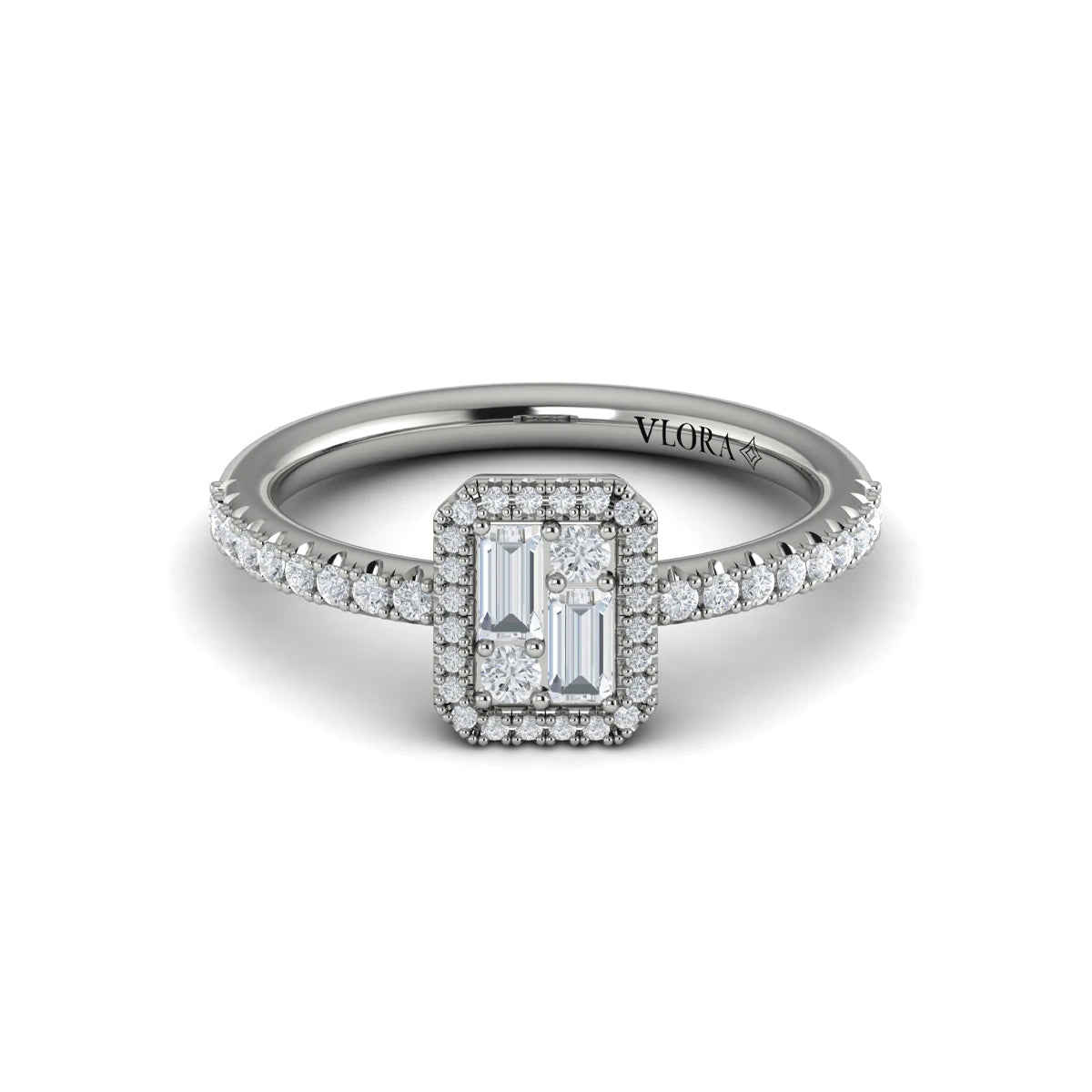 Diamond Halo with Diamond Baguettes Ring White Gold