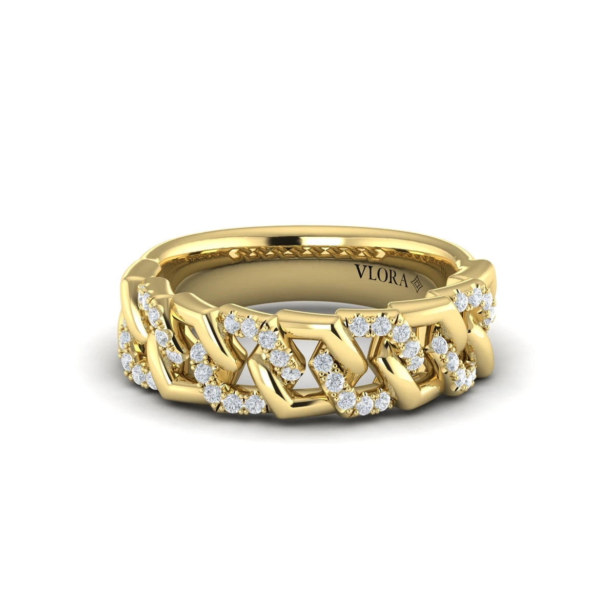 Diamond Interlaced Open Honeycomb Link Ring Yellow Gold