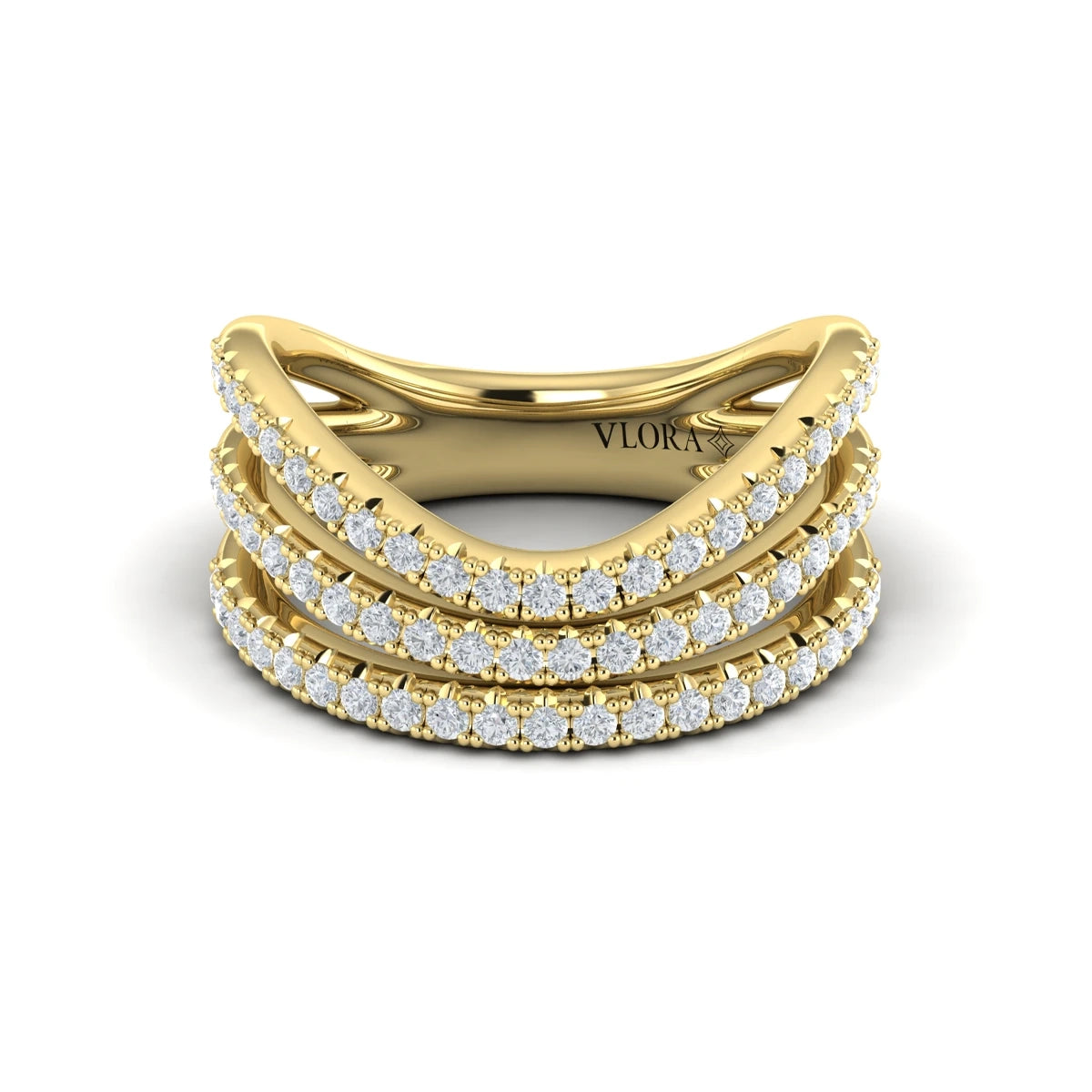 Diamond Multi-Row Curved Statement Ring Yellow Gold