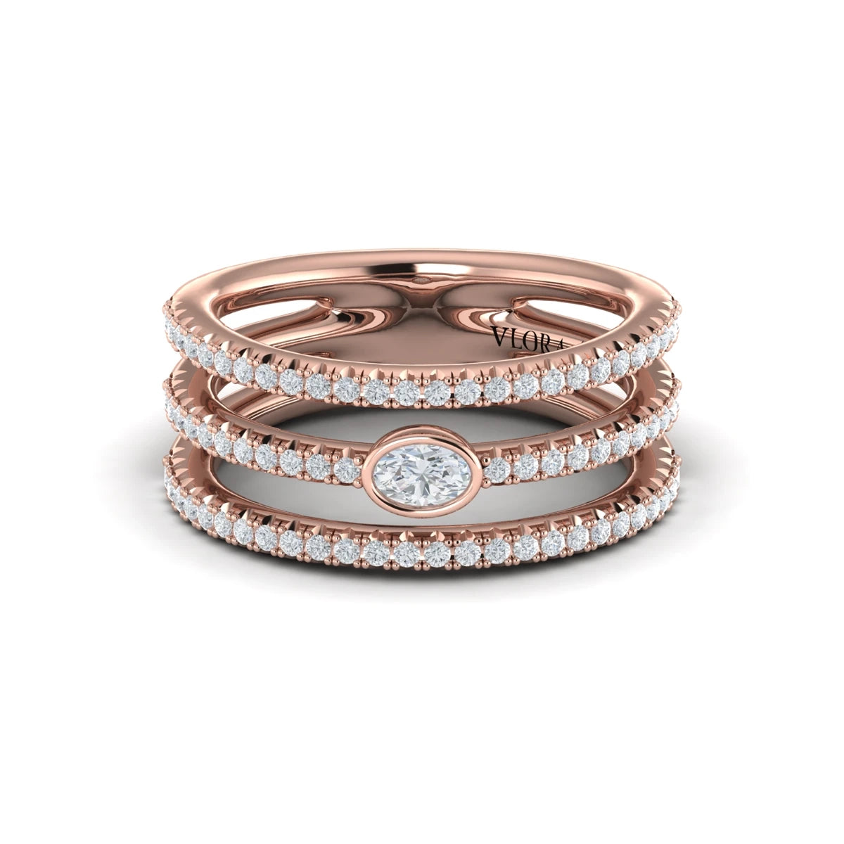 Diamond Open Three Row and Oval Centerstone Ring Rose Gold