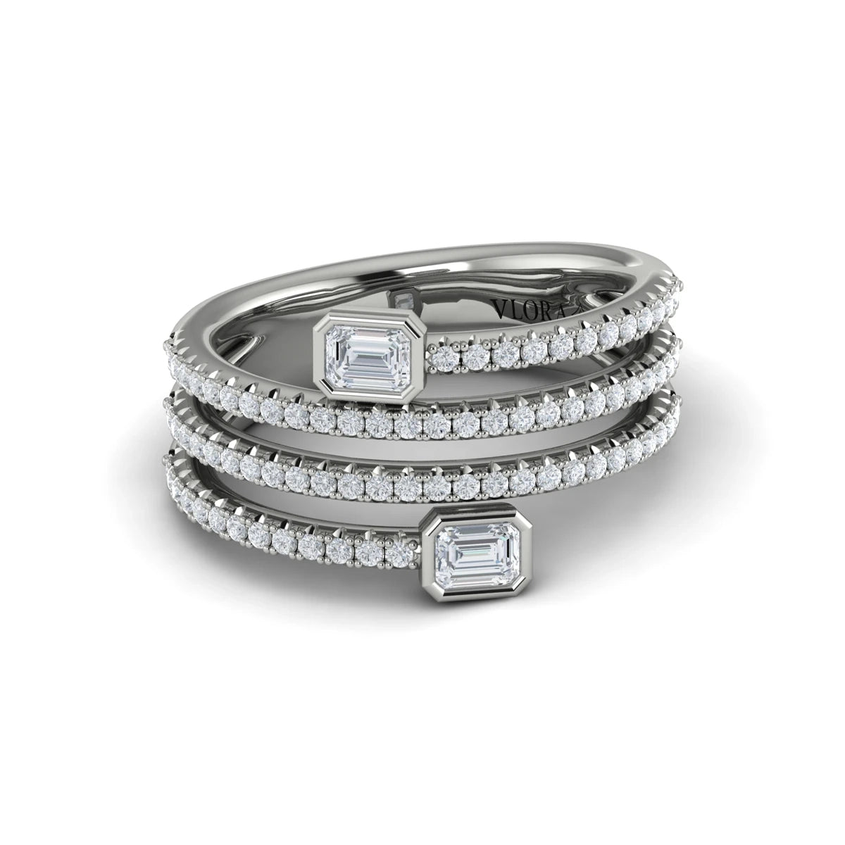 Diamond Three Row Diamond Baguette Wrap Ring White Gold