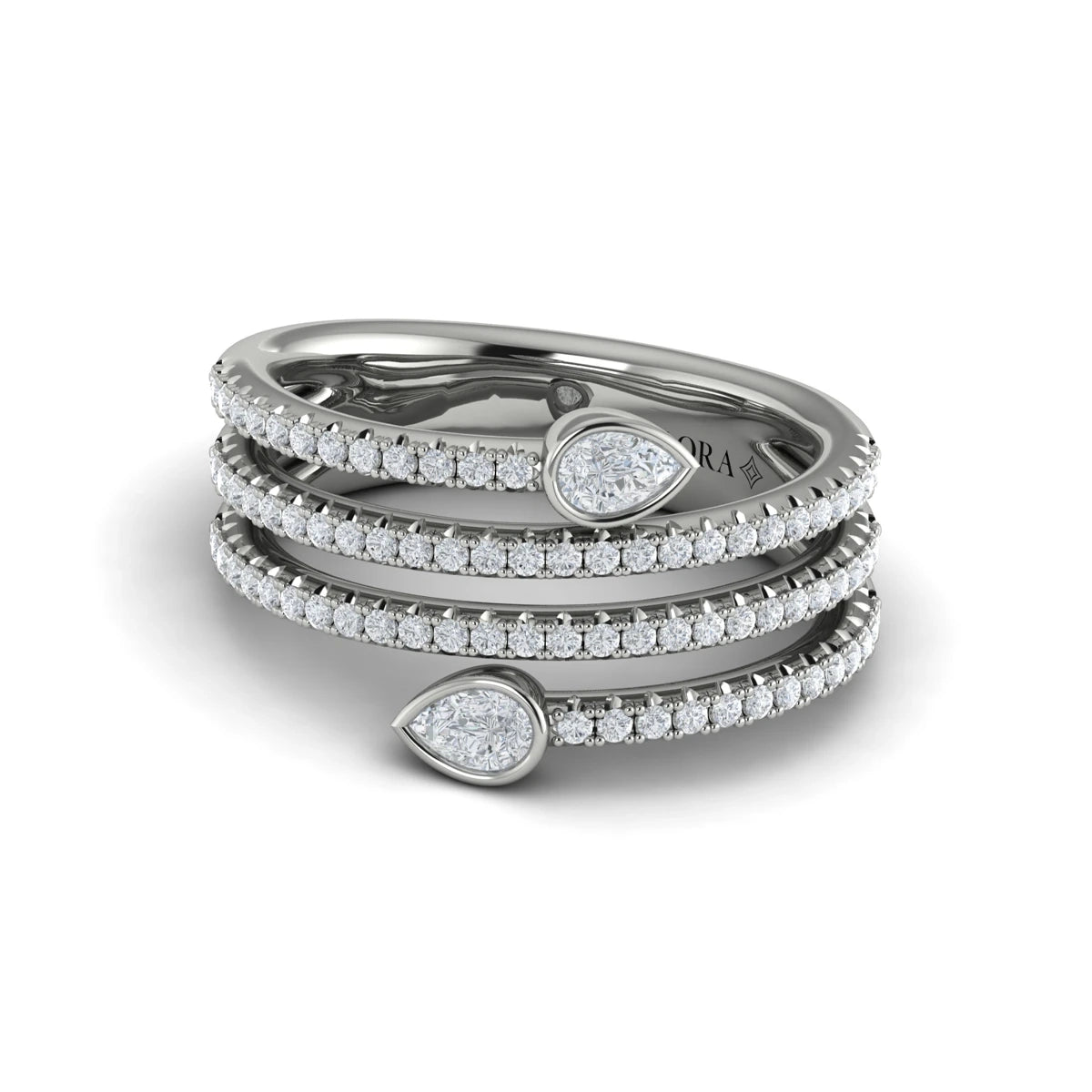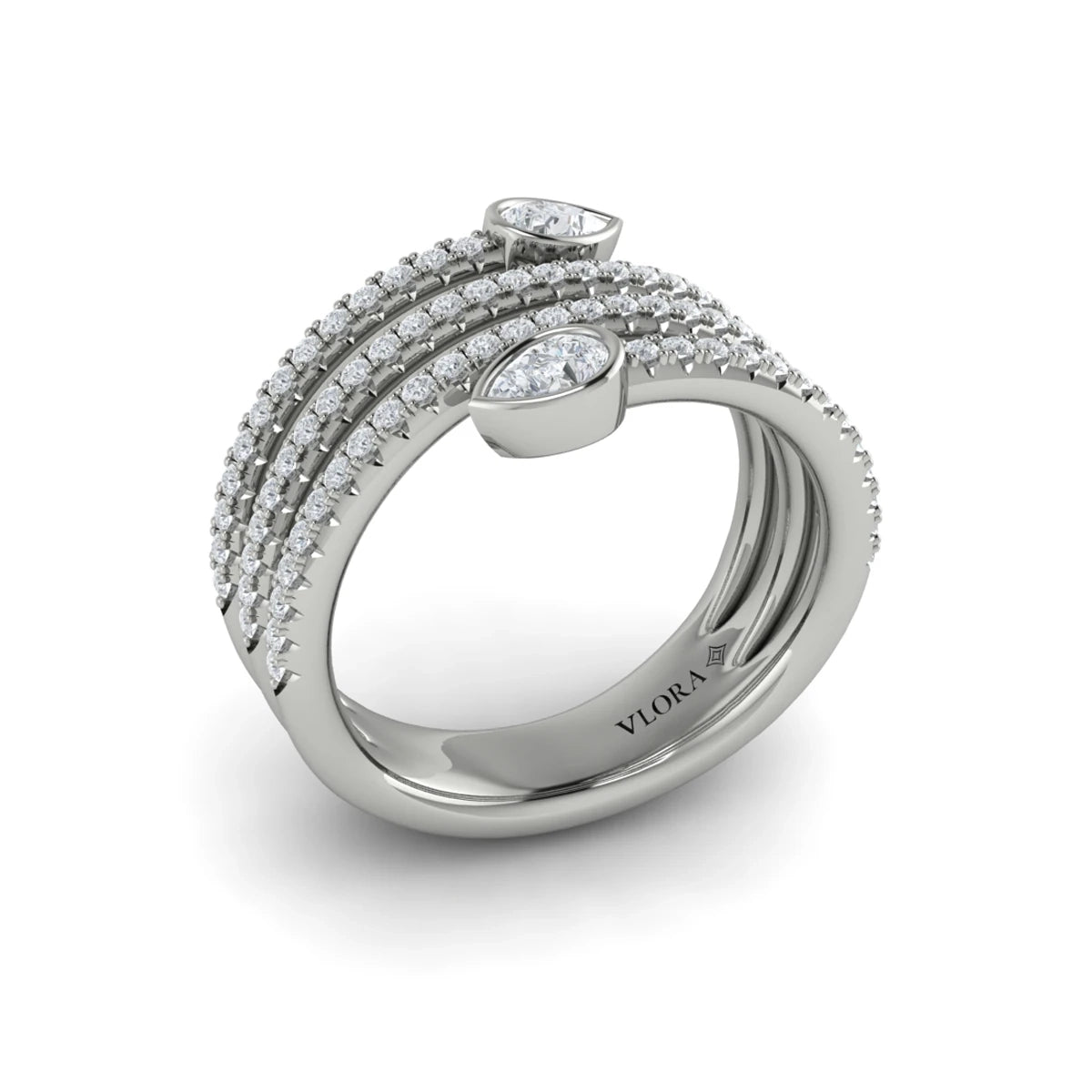 Diamond Three Row Diamond Pear Wrap Ring White Gold