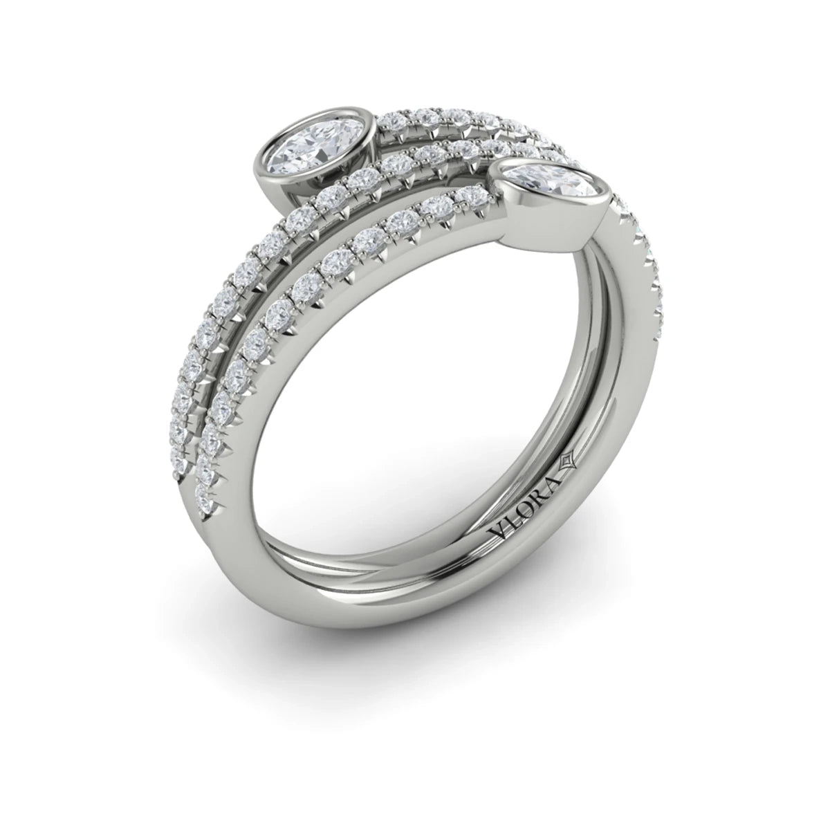 Diamond Three Row Oval Diamond Wrap Ring White Gold