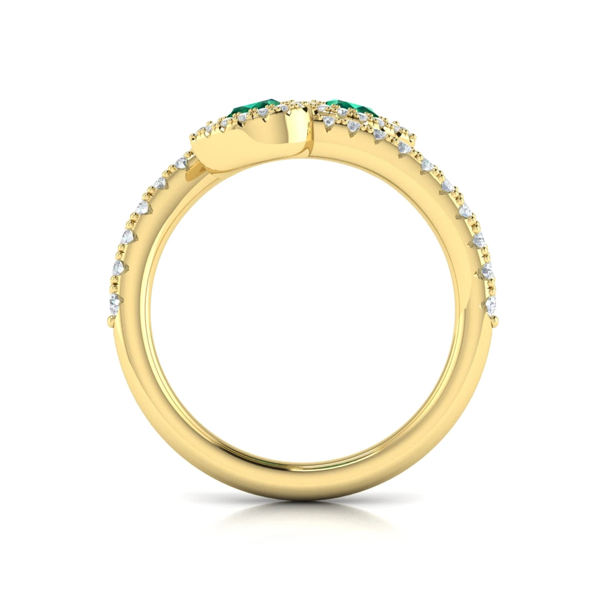 Diamond Wrapped Pear Emerald Ring Yellow Gold