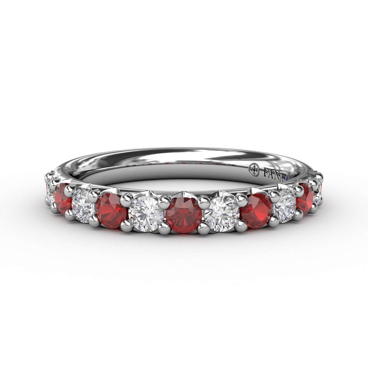 You're reviewing: Fana 14k White Gold Ruby and Diamond Shared Prong Anniversary Band