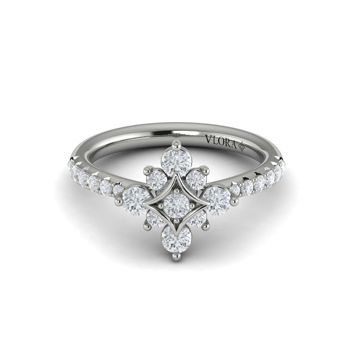Floating Diamond Floral and Vlora Star Ring Platinum