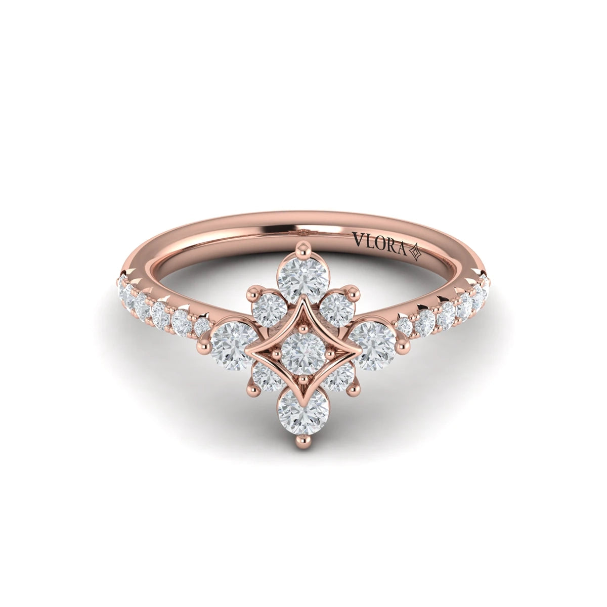 Floating Diamond Floral and Vlora Star Ring Rose Gold