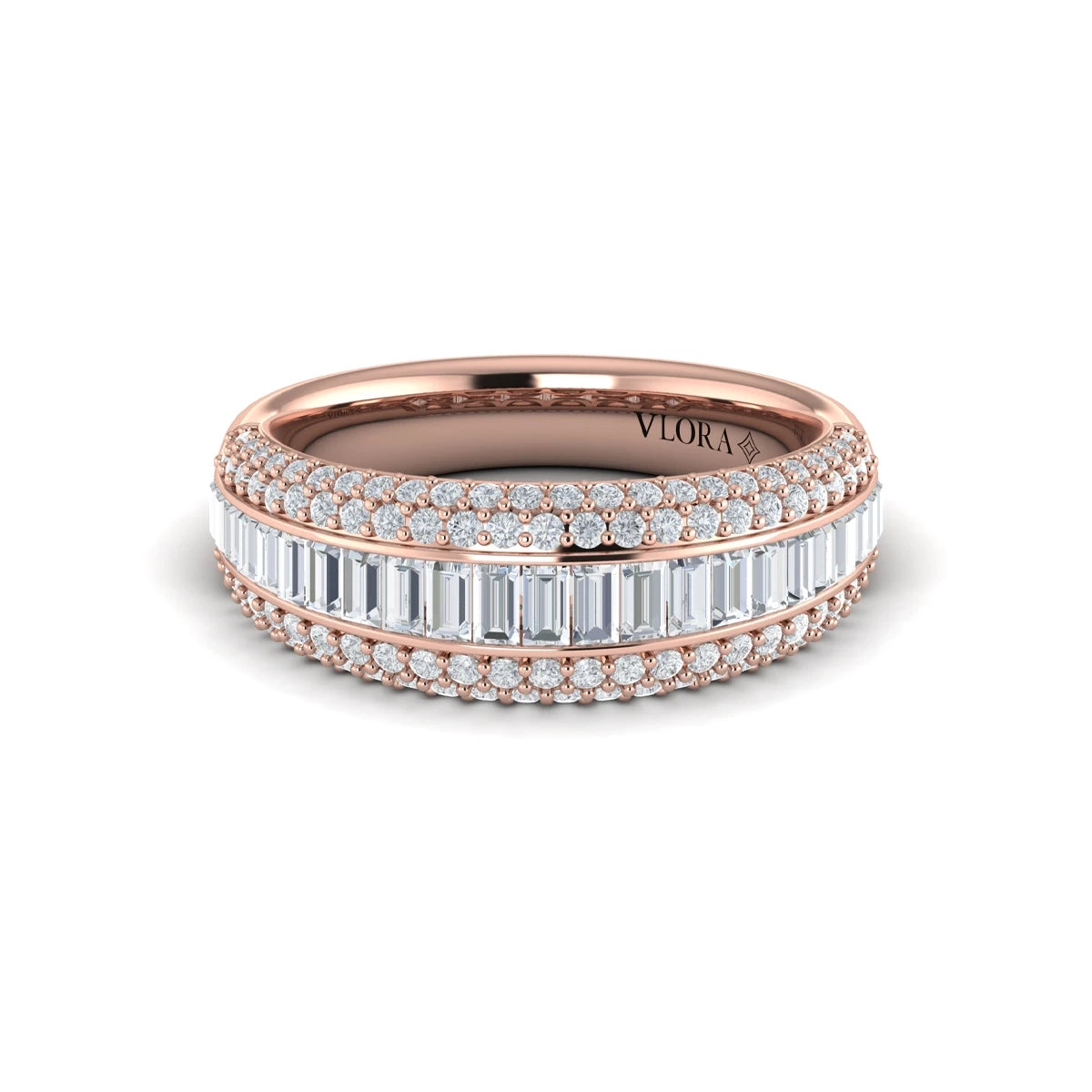 Multi Diamond Baguette and Round Two Row Diamond Ring Rose Gold
