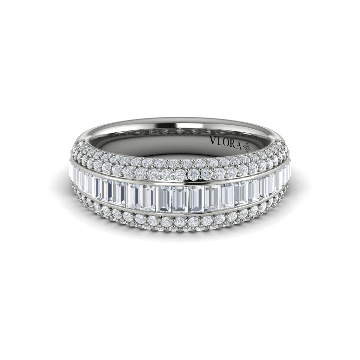 Multi Diamond Baguette and Round Two Row Diamond Ring White Gold