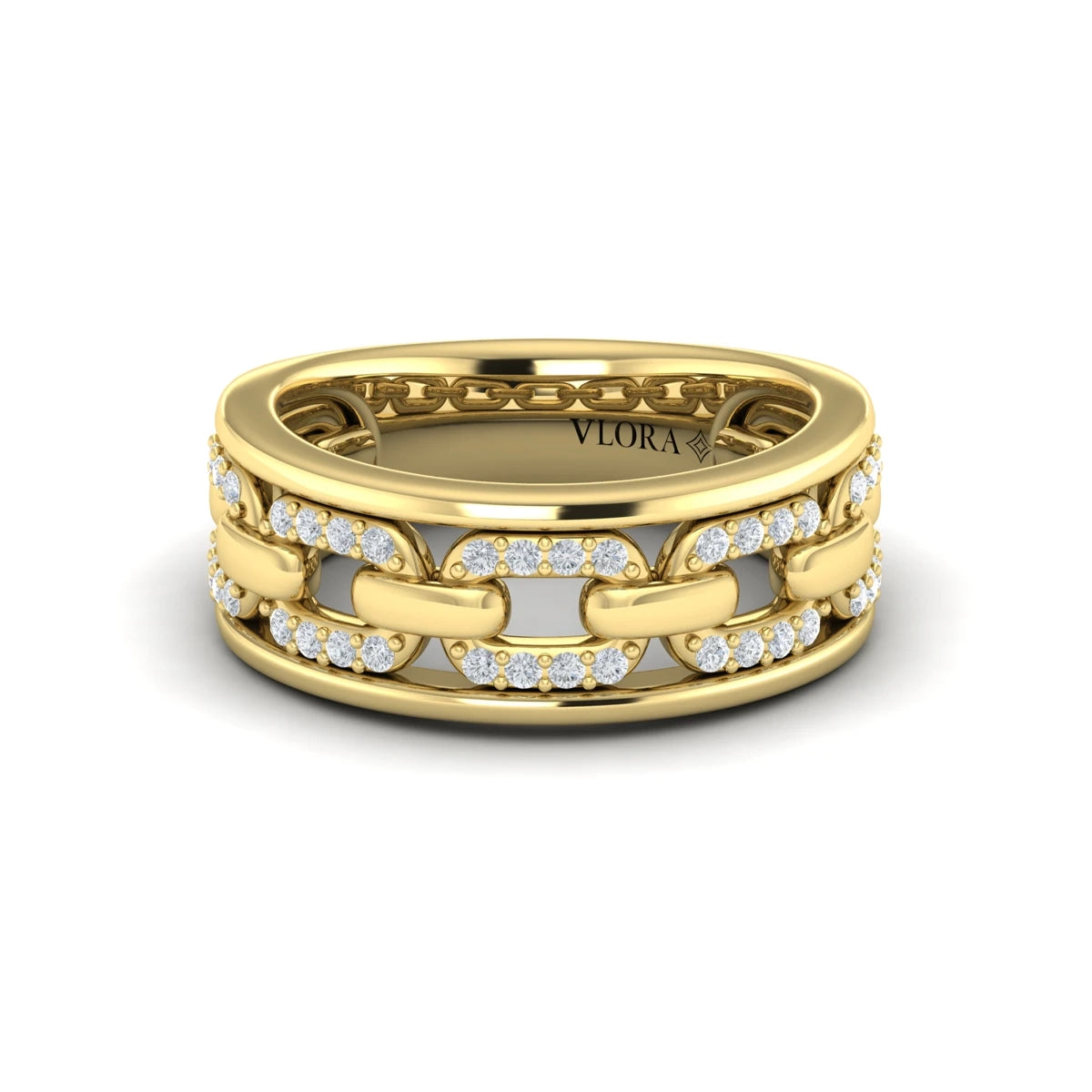 Reverse Channel Set Link with Diamonds Ring Yellow Gold