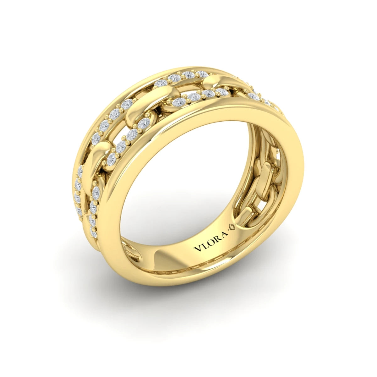 You're reviewing: Reverse Channel Set Link with Diamonds Ring Yellow Gold