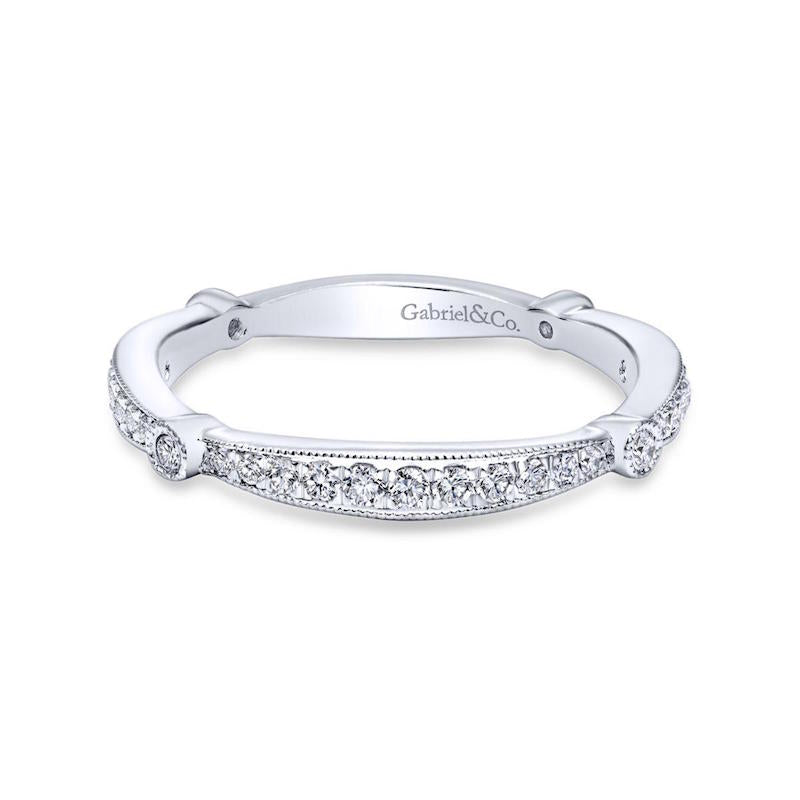 Gabriel & Co. 14k White Gold Victorian Diamond Wedding Band