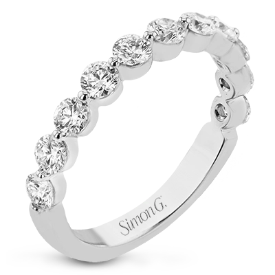 A modern design with a bubble setting that highlights each individual stone in this diamond wedding band 1.0 ctw.