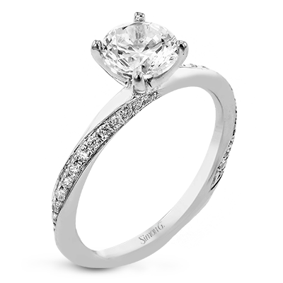 Unique twist design engagement ring with 0.19 ctw white diamonds set in a brushed white gold finish.