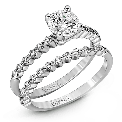 Featuring a charming classic design, this white gold engagement set is accented by .48 ctw of glistening round cut white diamonds.