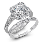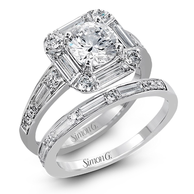 With a vintage touch, this stunning wedding set combines the understated elegance of baguette diamonds with the bright shine of round diamonds.