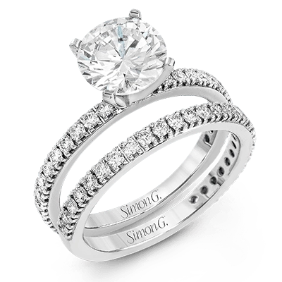 This beautiful 18k white gold wedding set contains a stunning .75 ctw of white round brilliant diamonds.