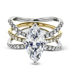 This distinctive bridal set design features a double-layer wedding band that fits around the engagement ring. The set contains .77 ctw of white diamonds.