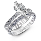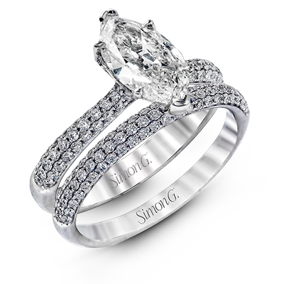 The classic design of this white gold engagement ring and wedding band set is emphasized by .72 ctw round cut white diamonds.