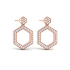 Channel Set Diamond Open Honeycomb Drop Stud Earrings