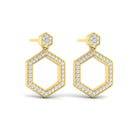 Channel Set Diamond Open Honeycomb Drop Stud Earrings