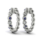Diamond and Blue Sapphire Twist Hoop Earrings Platinum