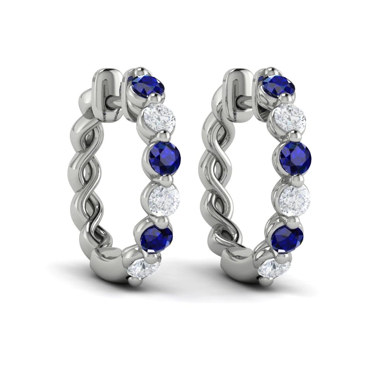 You're reviewing: Diamond and Blue Sapphire Twist Hoop Earrings White Gold