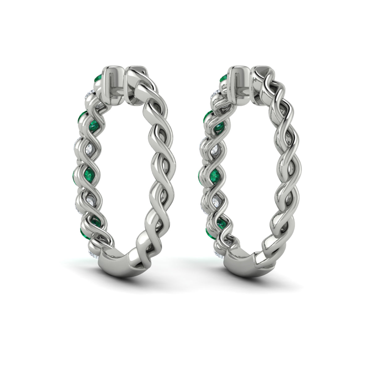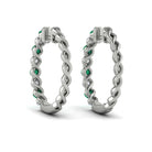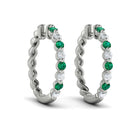 Diamond and Emerald Twist Hoop Earrings