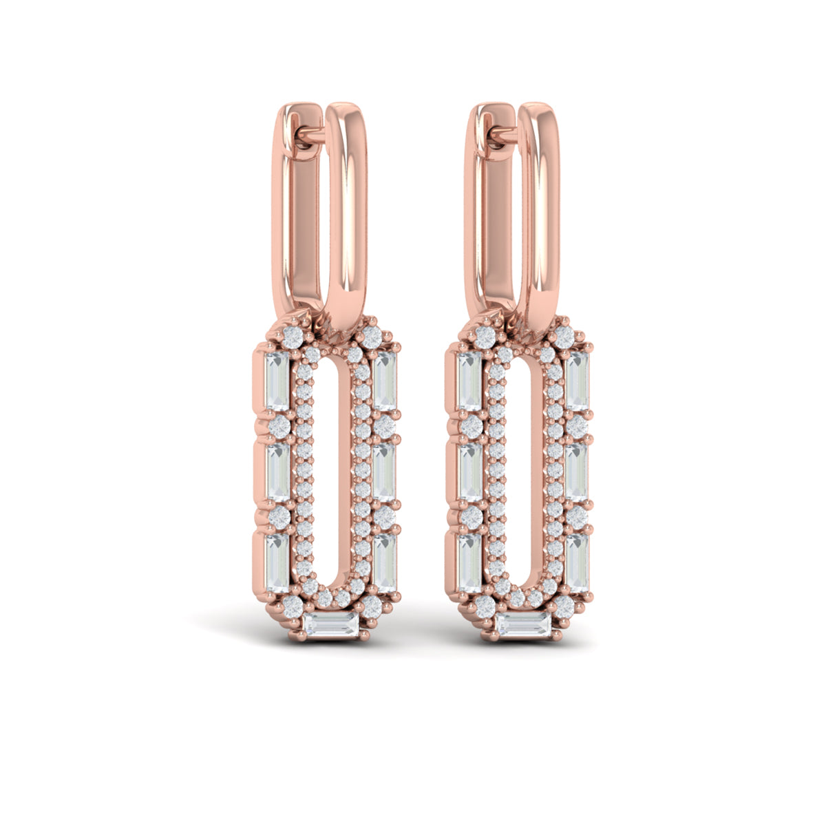 Diamond Baguette Double Row Link Drop Huggie Earrings