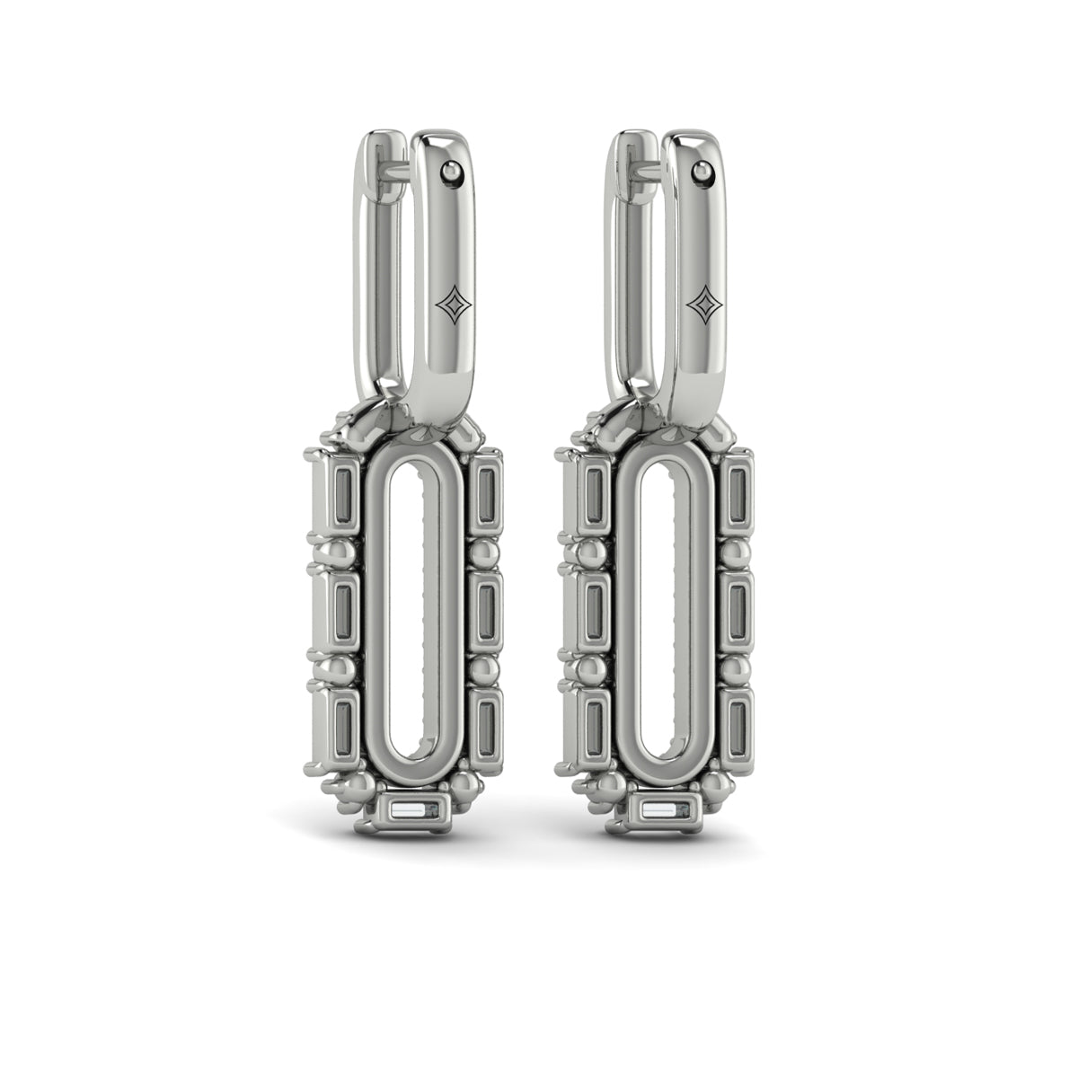 Diamond Baguette Double Row Link Drop Huggie Earrings