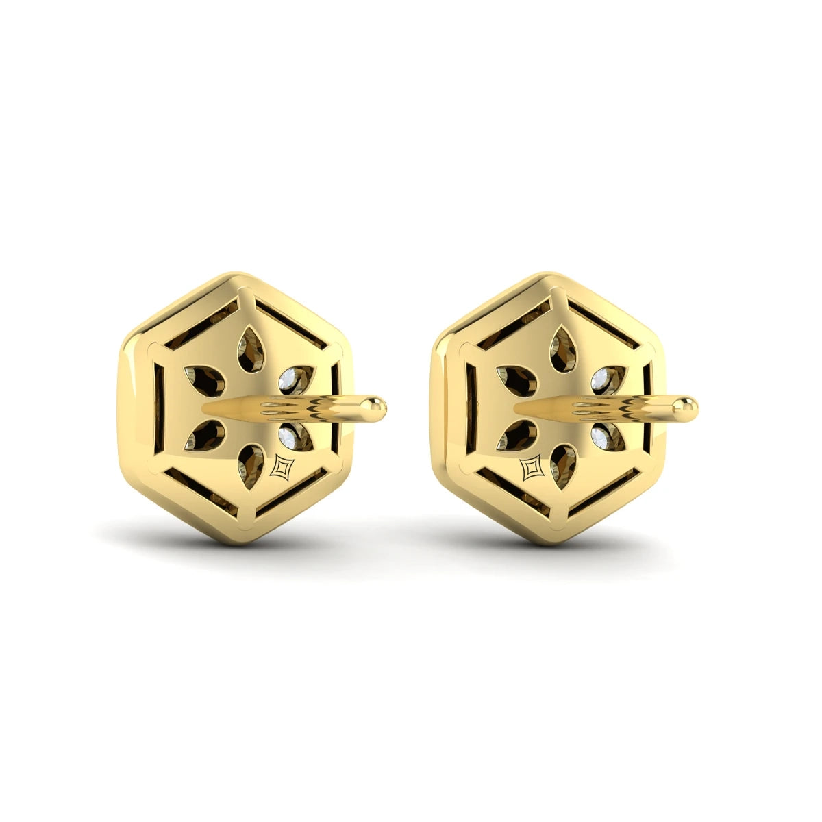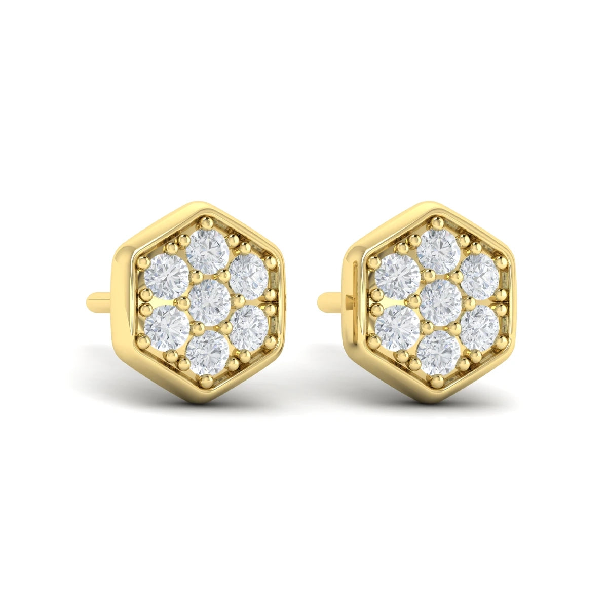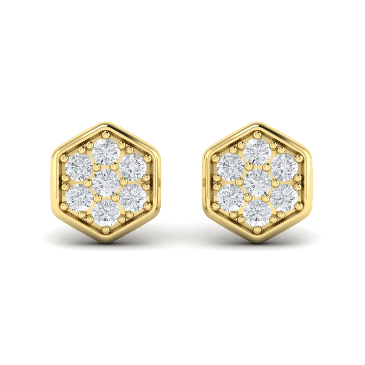 Diamond Cluster Honeycomb Stud Earrings Yellow Gold