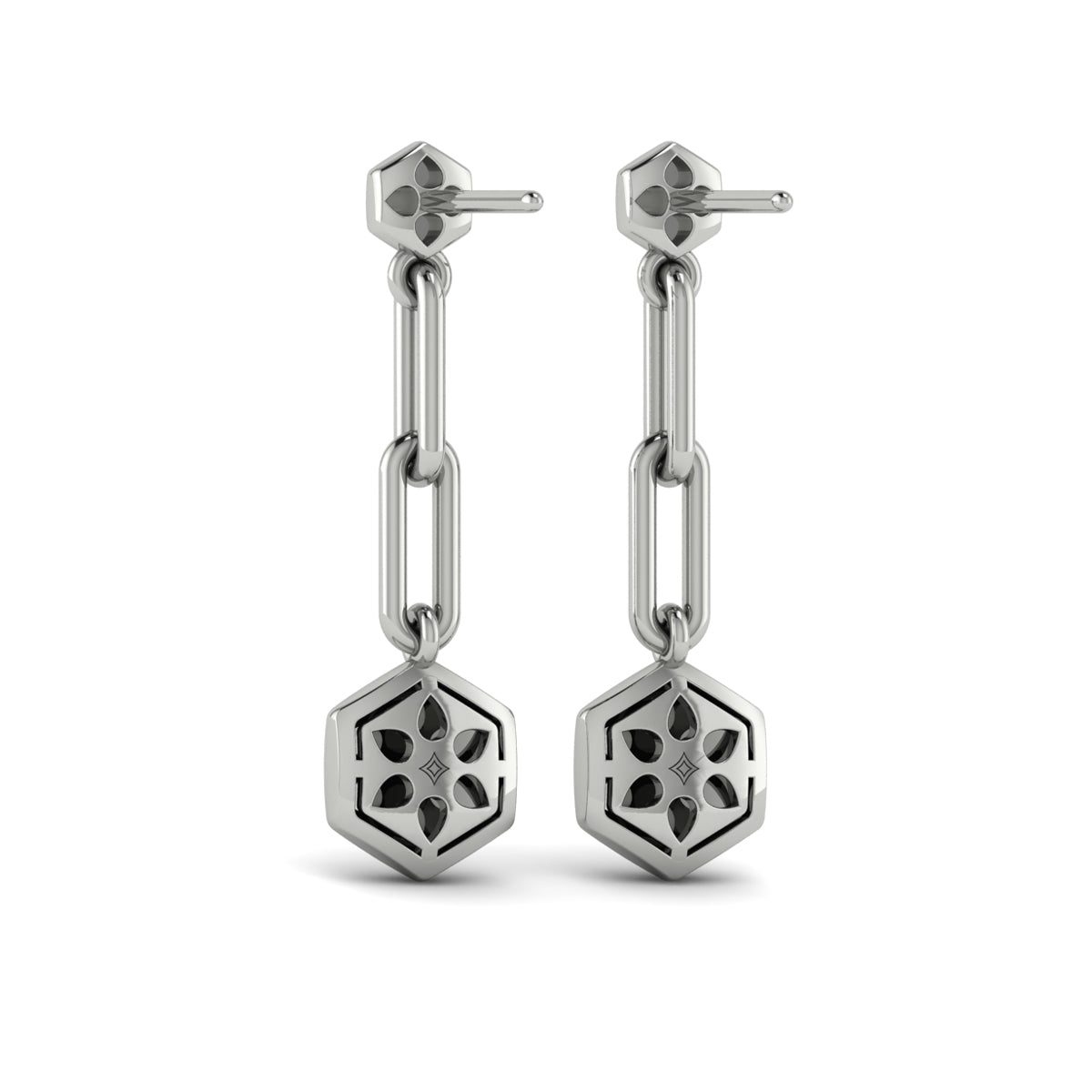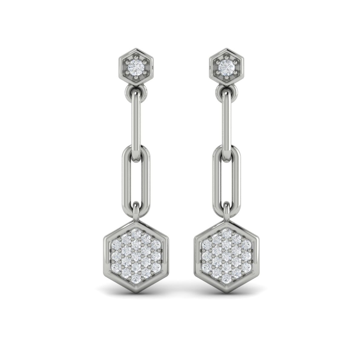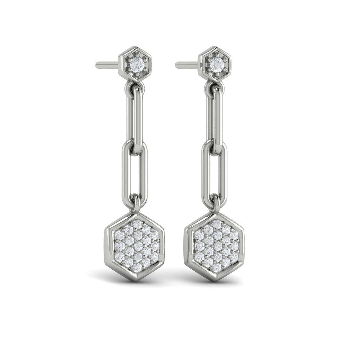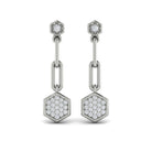 Diamond Honeycomb Link Long Drop Statement Earrings