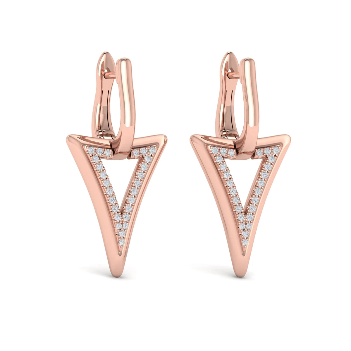 Diamond Open Double Trinity Huggie Earrings Rose Gold
