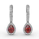 These feminine ruby and diamond teardrop hoop earrings come in a variety of material types like 14k white gold, yellow gold, rose gold and can be customized. Classic Fana gemstone earrings are perfect for that special woman in your life.
