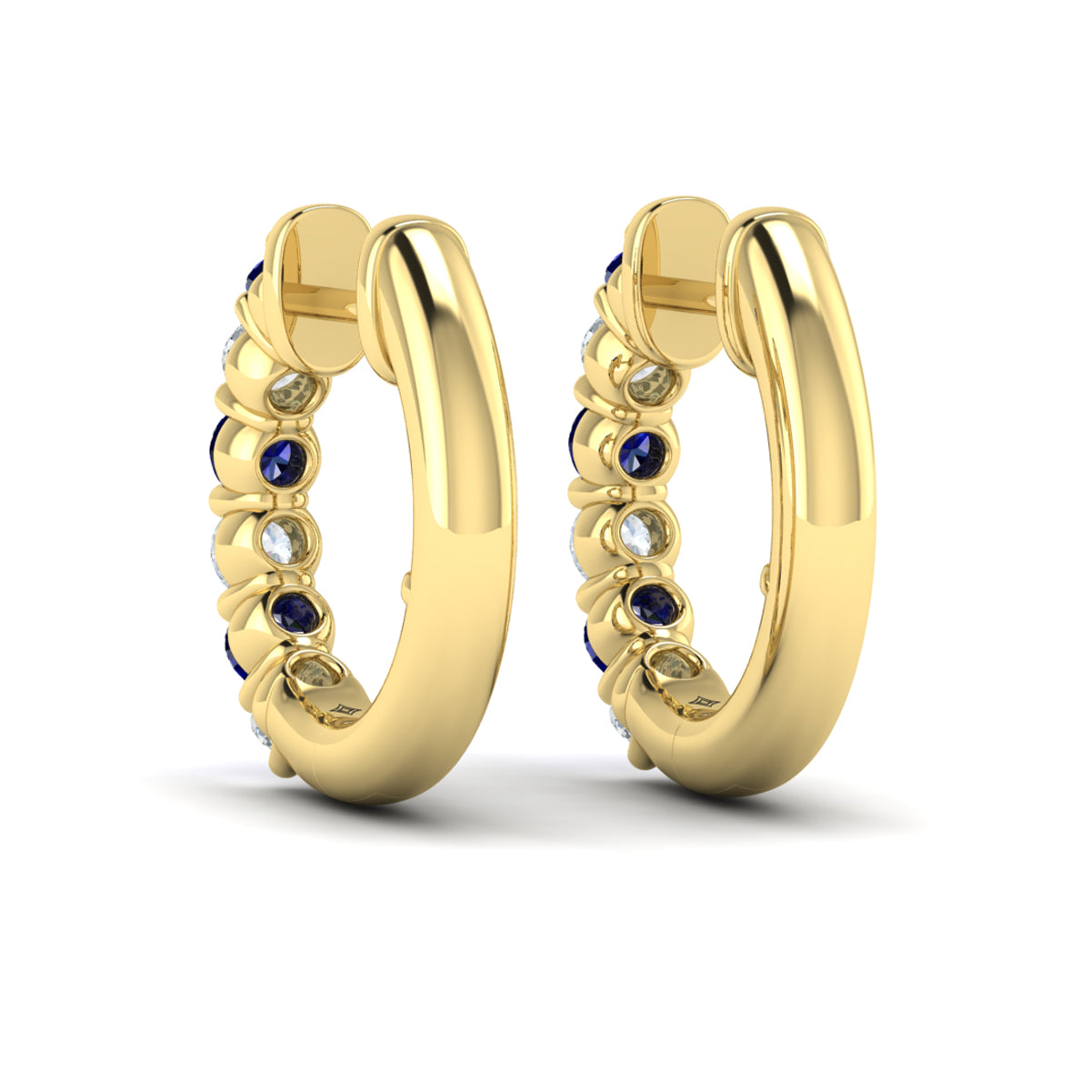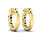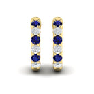 Forward-facing Diamond and Blue Sapphire Open Hoop Earrings